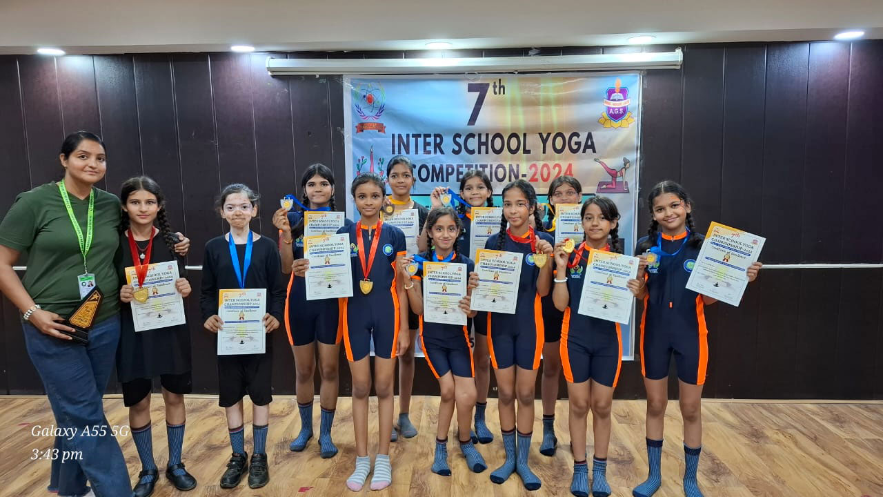 At Sanskar World School, we continue to set new benchmarks in holistic education, guided by the visionary leadership of our esteemed Director, Mr. Vivek Upadhyay, the unwavering support of Ms. Priyum Upadhyay, and the inspiring guidance of our respected Principal, Ms. Sunita Dhawan. Their dedication to nurturing well-rounded individuals has once again borne fruit as our students made us proud at the Inter School Yoga Competition, 2024, organized by Genius Sports Event Management and held at Adharsheela Global School, Sector 3, Vasundhara, Ghaziabad, on 25th August.